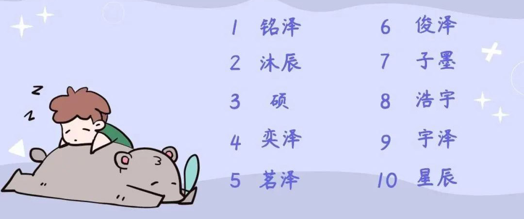 北湖新生男宝名字常用字TOP10(数据来自网络仅供参考)